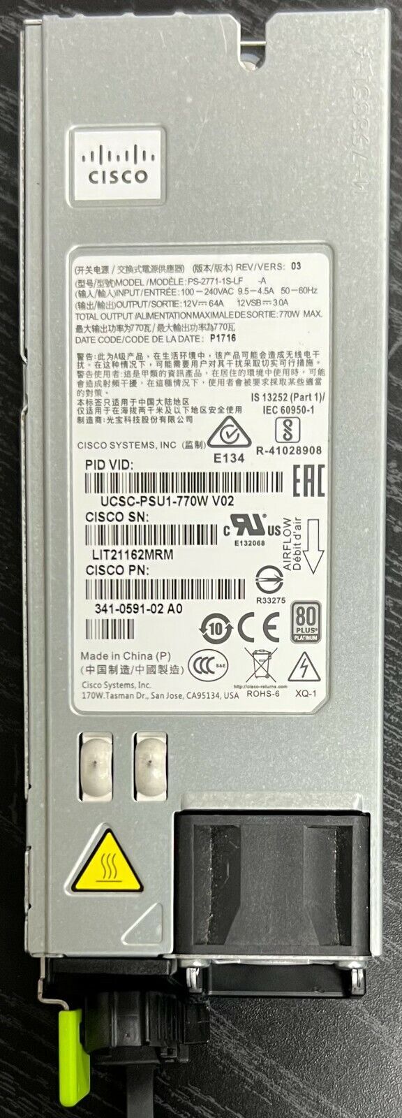 Fuente de Poder Cisco 341-0591-02 770W para Cisco UCS C220 M4 Server UCSC-PSU1-770W Descripción $115.00 $234.00 Agregar