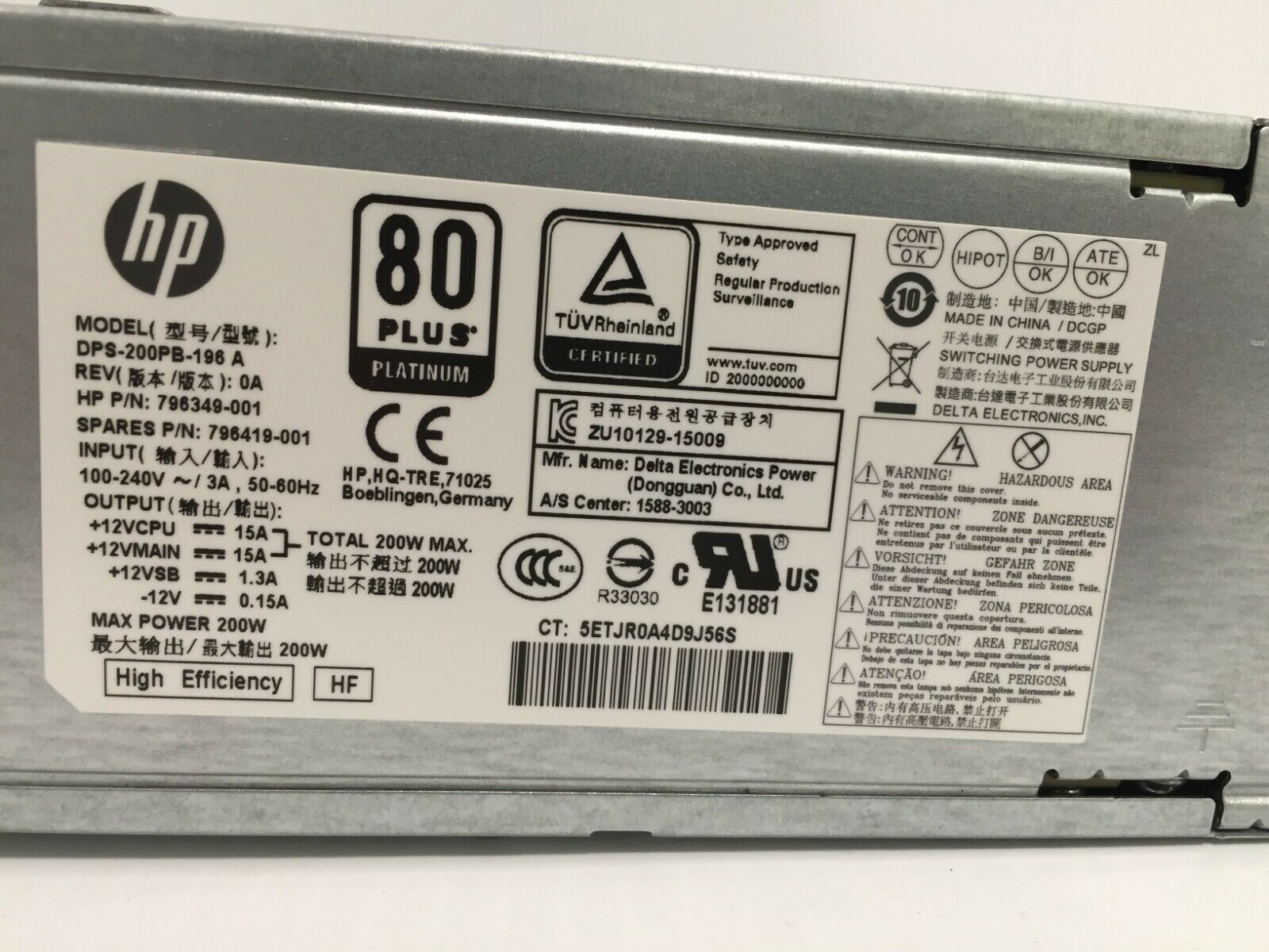 Fuente de Poder HP ProDesk 600 800 G2 200W 4-Pin 12V 796349-001-796419-001 - 796350-001 - Retirado de Equipo en Uso Garantia 12 Meses