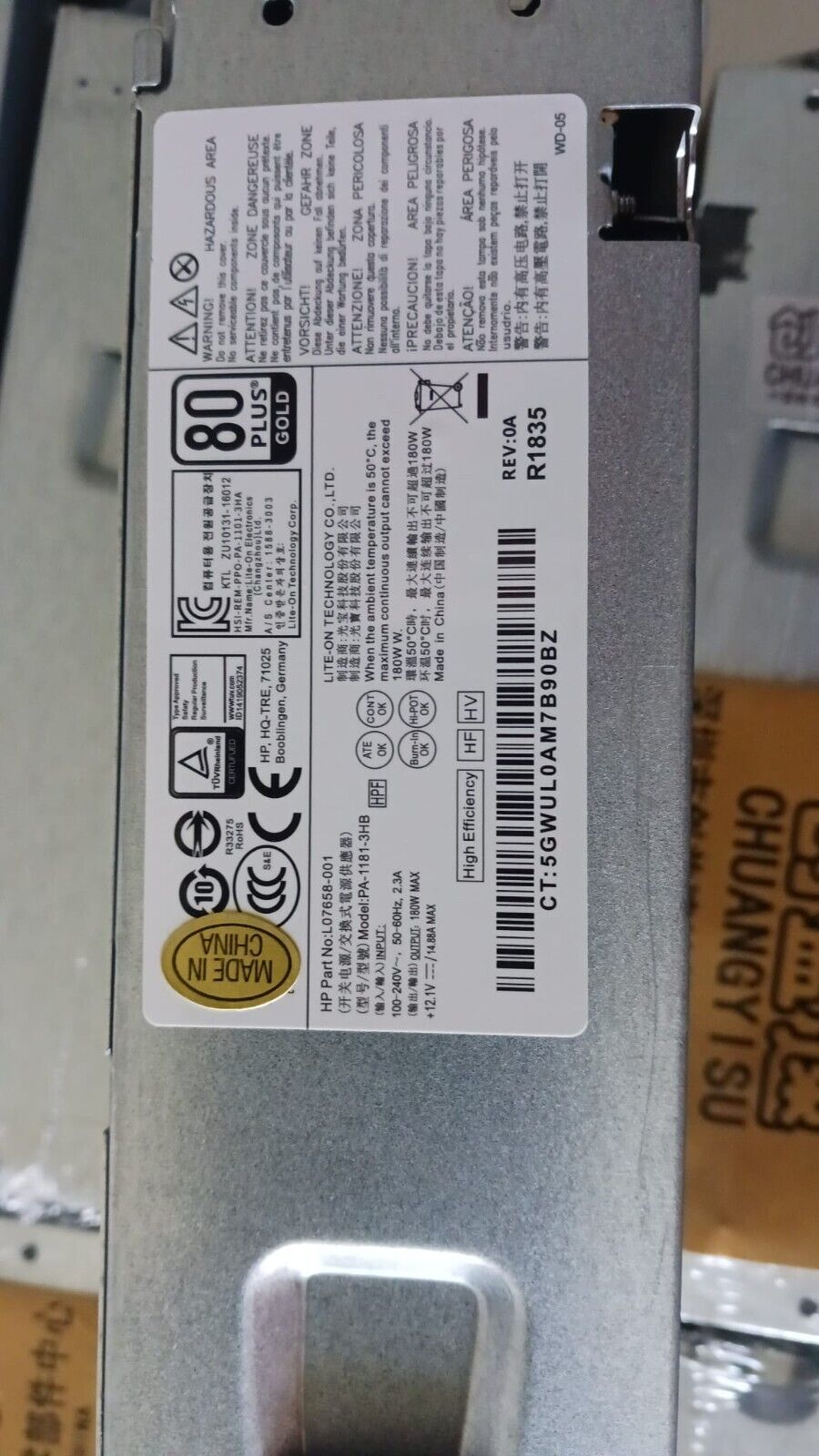 Fuente HP ProDesk 400 G5 180W SFF L07658-001 L07658-004 - Retirado equipo en uso garantia 12 Meses