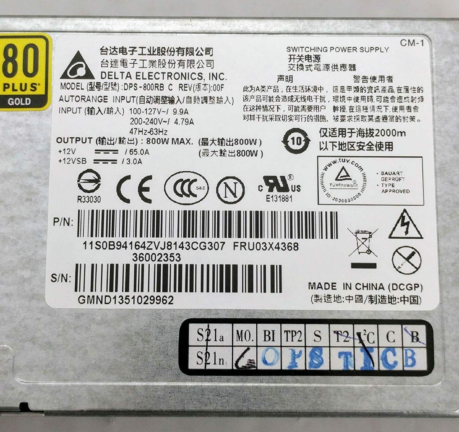Fuente LENOVO 03X4368 ThinkServer RD440 RD640 800W - Retirado de equipo en uso