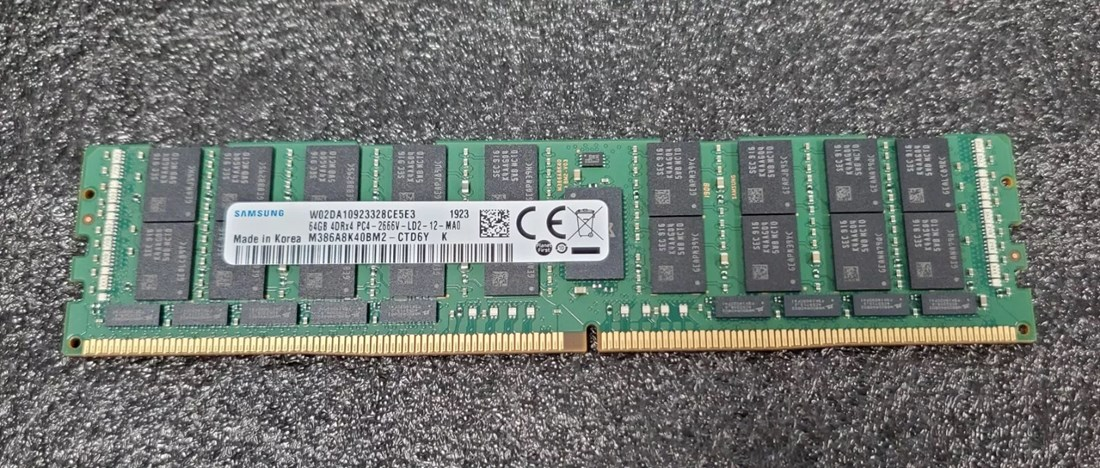 Memoria para servidores HP Lenovo Dell Marca Samsung 64GB 4DRx4 PC4-2666V 01DE975 M386A8K40CM2-CTD7Y Retirado de Equipo en Uso Garantia 12 Meses